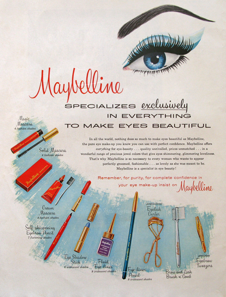 就這樣,全世界第一支Mascara(睫毛膏的英文名)的身世了,同時(shí)這也是全球第一代眼部化妝品。在1915年,Tom把妹妹名字(Mabel)和凡士林(Vaseline)的英文拼寫組合在一起,把公司命名為美寶蓮紐約(Maybelline)。