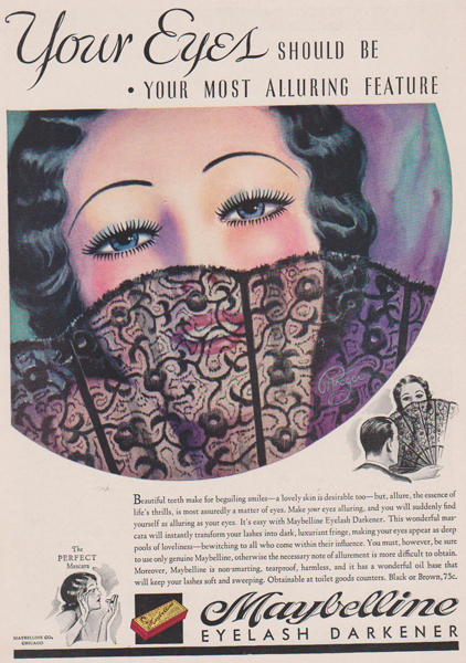 1913年的時(shí)候(不要懷疑時(shí)間,就是那么早),有個(gè)叫做瑪貝爾(Mabel)的姑娘單戀上一個(gè)帥小伙兒,為了讓睫毛好看好看一點(diǎn)兒,這姑娘就用凡士林加上煤灰來(lái)為自己的睫毛上了點(diǎn)兒妝。而這個(gè)土方子,還是她從某時(shí)尚雜志上看來(lái)的。