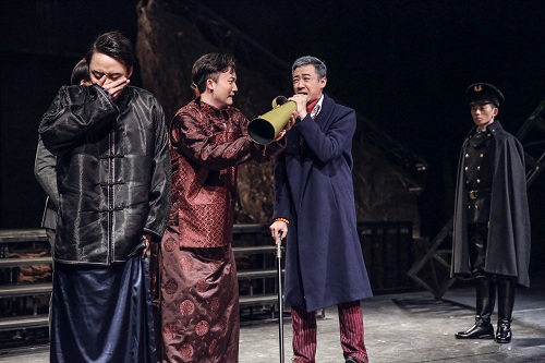 在荒誕悲喜劇《造王府》中,五位掌握金錢和話語權(quán)的達官貴人爾虞我詐,明爭暗斗。而作為全劇發(fā)展的一條副線,楊婉兒和張署長及馬副官的三角戀情也讓觀眾又恨又憐,都說戲子無情,可這無情之人卻因“有情”成為貪官手里的替罪羊。因孽緣因執(zhí)迷因一念之間,貪愛恨貪名利貪徒有虛表,是非可以顛倒,善惡難以分辨。最終,觀眾苦苦等待的真像也未能到來?!对焱醺纷屇阕呷牖奶评锏寞偪駚y世,又見證亂世中的愛恨孽長。