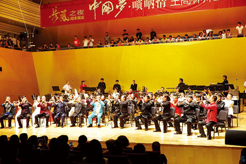 圖為6月17日晚,在山西大劇院“《中國夢·嗩吶情》王高林師生嗩吶音樂會”演出現(xiàn)場