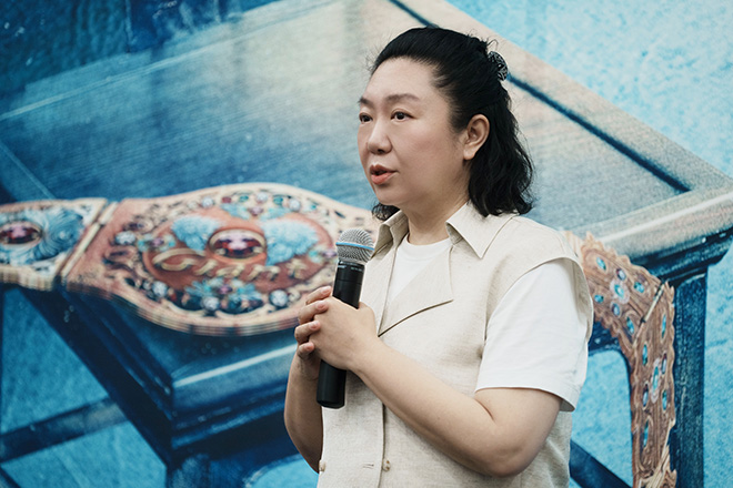 談到話劇《搭手飛人》,她稱這部作品是中國國家話劇院守中華傳統(tǒng)文化之正,創(chuàng)意時代表達(dá)之新的作品?!皬膭≈械膫b義精神、武林規(guī)矩來談中華民族道德層面上的精神和智慧,重情重義、守正守信、獨立自強(qiáng)。通過這部劇,看懂中國人,做人行事的人文特質(zhì)和自覺意識,這種自覺,是高妙的智慧,是古老大國‘天人合一’的高維思想,庚續(xù)下來的‘中國自覺’。這部劇講述武林故事,也探討中國精神。期待在浩峰導(dǎo)演、呂波導(dǎo)演的舞臺構(gòu)想中,讓觀眾沉浸武林,認(rèn)知中國?!?/p>