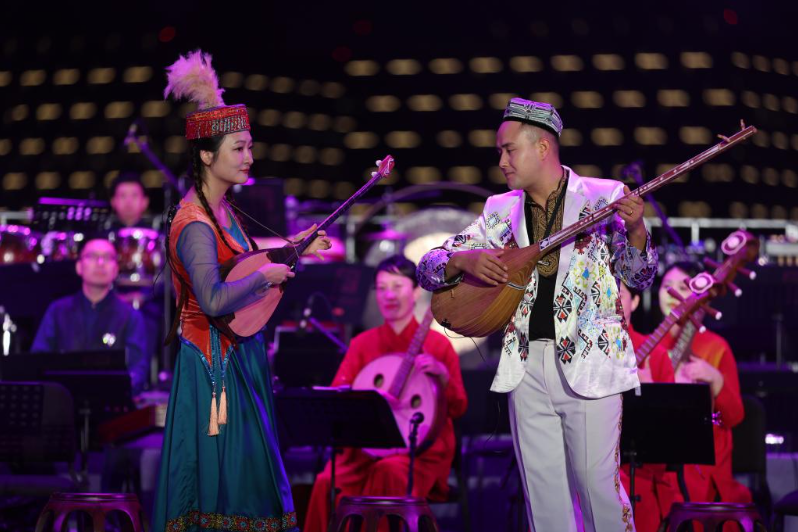 當(dāng)日,作為第二十二屆中國上海國際藝術(shù)節(jié)“藝術(shù)天空”系列的首場活動,上海民族樂團(tuán)原創(chuàng)音樂會《國樂詠中華》在上海閔行文化公園奏響。
