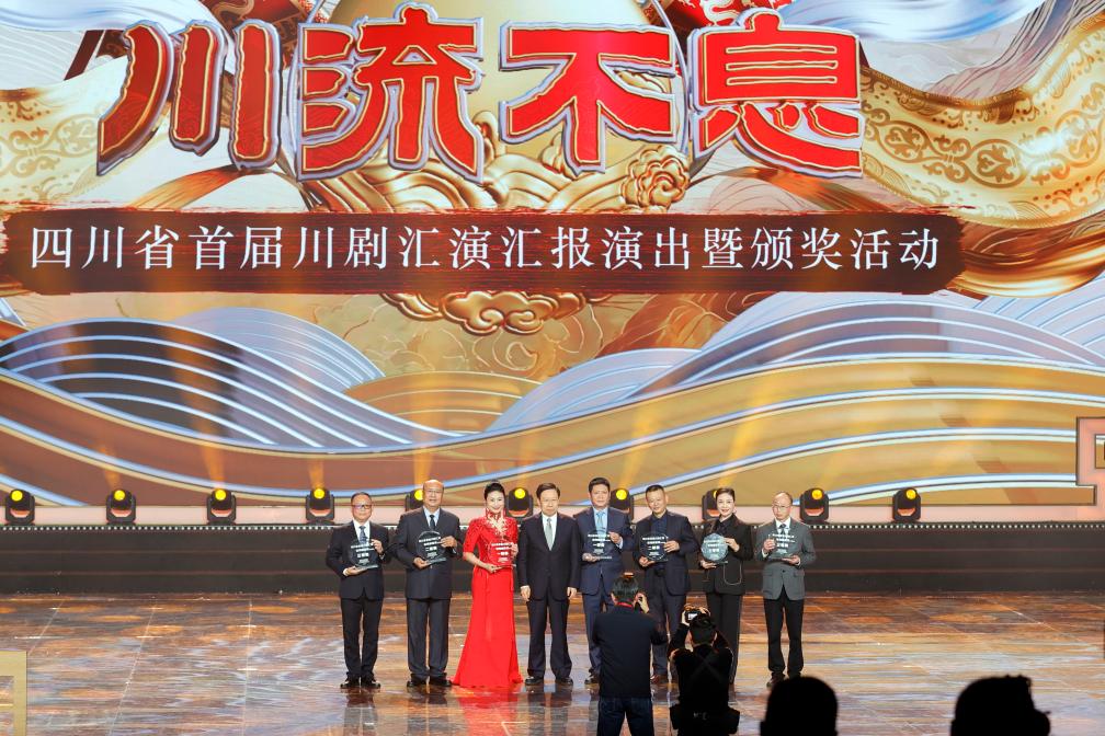 當(dāng)日,“川流不息”四川省首屆川劇匯演匯報演出暨頒獎活動在成都城市音樂廳舉行,集中展示川劇匯演成果,藝術(shù)呈現(xiàn)川劇藝術(shù)精粹,為優(yōu)秀劇目獎、特別貢獻獎、年度英才獎、組織工作獎頒獎。