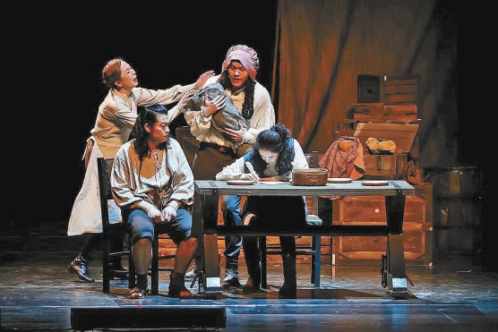 與16世紀(jì)“大航海”時(shí)代主題相扣,《威廉與我》的舞臺(tái)散發(fā)著復(fù)古氣息。巧妙多變的裝置設(shè)計(jì),融合了古典與當(dāng)代,既像一座微型劇場,又像一艘航行大船,還像一頂恢宏皇冠,也像一處囚籠刑場。劇中四位優(yōu)秀演員,以幽默詼諧、靈氣詩意、舉重若輕、跳進(jìn)跳出的表演和身份轉(zhuǎn)換,分別扮演莎士比亞的童年、青年、中年、老年和其他30多個(gè)角色,在有限的時(shí)空中,用無限的想象力和表現(xiàn)力,將這位傳奇劇作家一生中的重要事件及作品創(chuàng)作情況串聯(lián)起來,演繹出他所處時(shí)代的風(fēng)云變幻及其動(dòng)蕩漂泊的復(fù)雜一生。