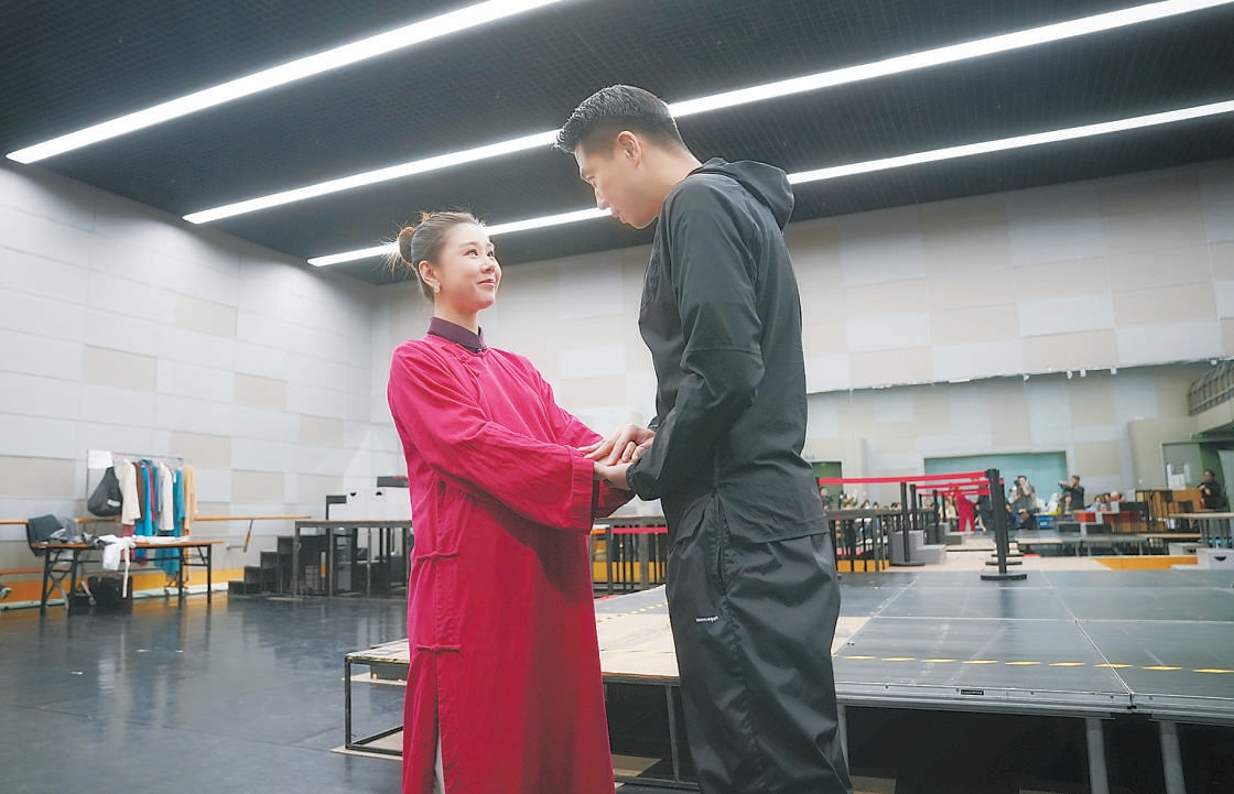 層疊的階梯、平臺把排練廳分割出高低錯落的空間,演員們穿行其間,走位自然帶上了一種落差感——這如同對主角鄧世昌心境的暗喻?!叭绻f《林則徐》講述的是幾位能左右國家命運的大人物的斗爭,那么《鄧世昌》就像一個人的戰(zhàn)爭?!眻?zhí)導兩部作品的導演王筱頔說。