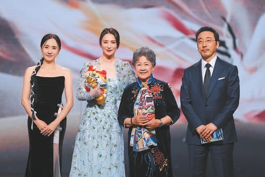 最受大學(xué)生歡迎年度女演員榮譽由《草木人間》的主演蔣勤勤(左二)獲得。