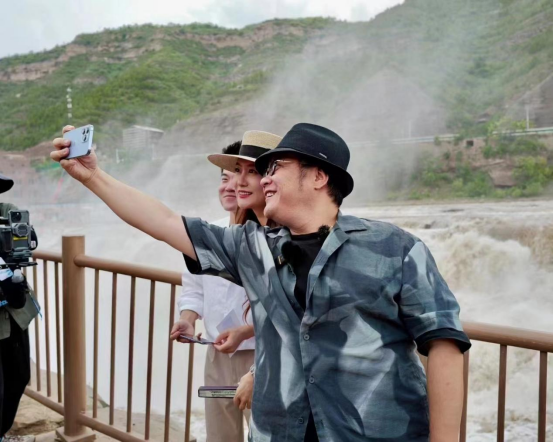 6月13日,二人轉(zhuǎn)戰(zhàn)臨汾吉縣,與同樣應(yīng)邀而來的導(dǎo)演寧浩相會(huì)于壺口瀑布,共同為家鄉(xiāng)文化代言、為山西文旅發(fā)聲。身為臨汾人,卻是第一次來到壺口瀑布,被這座有“黃河心臟”之稱的瀑布深深震撼的譚晶“秒變游客”,不停地與翻涌奔騰的黃河合影、自拍,感受家鄉(xiāng)山水的波瀾壯闊之美。