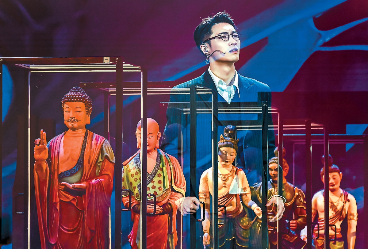 國(guó)家話(huà)劇院音樂(lè)話(huà)劇《受到召喚·敦煌》的舞臺(tái)上,張藝興的殺手锏是“真誠(chéng)”,臺(tái)詞真誠(chéng)、演唱真誠(chéng)、肢體語(yǔ)言更真誠(chéng)……從1935年的常書(shū)鴻到2035年的張燃,橫跨100年的兩個(gè)人被張藝興以真誠(chéng)連接,最終殊途同歸。距離2024年演出收官將近半年的時(shí)間,這艘承載著文化使命的巨型航母再度起航,南京、蘭州、成都……一步一蓮花,在行走中“修行”。如果說(shuō)一部話(huà)劇讓敦煌不止于學(xué)界,更屬于每個(gè)人,那么這部舞臺(tái)鴻篇也遠(yuǎn)遠(yuǎn)超出了一臺(tái)戲的范疇,成了主演張藝興和劇組的精神原鄉(xiāng)。