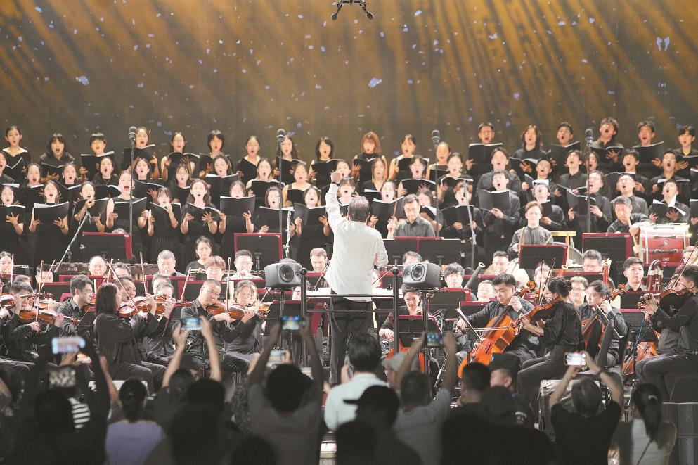 在音樂總監(jiān)余隆執(zhí)棒下,上海交響樂團(tuán)攜手回聲節(jié)日合唱團(tuán)為2025上海夏季音樂節(jié)畫上句點。 沈超凱 攝