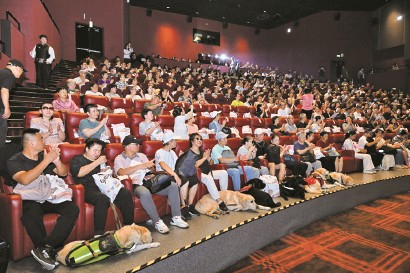 在志愿者引導(dǎo)下,導(dǎo)盲犬的主人在影廳第一排坐下,犬只安靜趴在腳邊。整個影廳360多個座位幾乎滿座。與日常觀影不同,這里的觀眾幾乎都是視障者,影廳一角還配備了專門的現(xiàn)場解說團隊。當(dāng)燈光暗下,銀幕亮起,除了影片本身的臺詞和配樂,現(xiàn)場還響起了一道溫暖的人聲,描述著人物的表情、場景的變換、動作的細節(jié)……