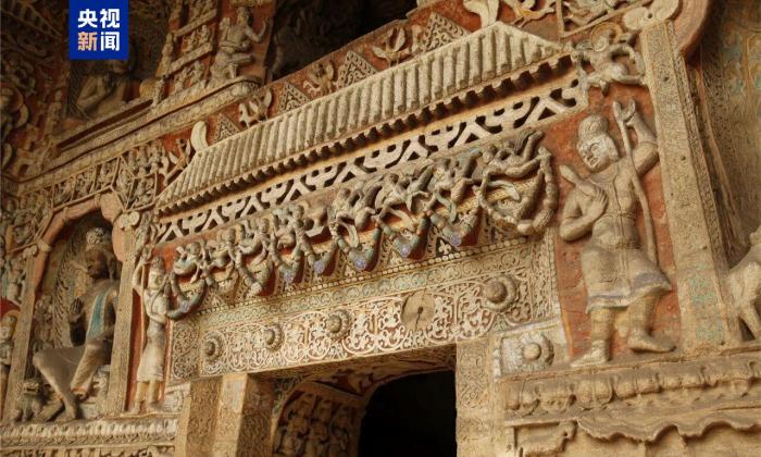 今天,經(jīng)過(guò)15個(gè)月的系統(tǒng)性維護(hù),世界文化遺產(chǎn)云岡石窟第九窟正式恢復(fù)對(duì)公眾開放。第九窟位于云岡石窟群中部,是典型的漢風(fēng)洞窟。石窟外觀古樸厚重,崖壁上留存著歲月侵蝕的痕跡,其采用列柱式前后室結(jié)構(gòu),窟內(nèi)四壁分層布龕,現(xiàn)存造像1140余尊(身)。