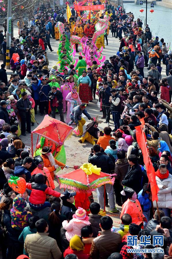 2月21日,社火隊在進行巡游拜年。當日,有著千年歷史的傳統村落——山東省章丘市三德范村組織31個社火隊舉行社火巡游拜年活動,在元宵佳節(jié)來臨之際為鄉(xiāng)親們送祝福。新華社記者 郭緒雷攝