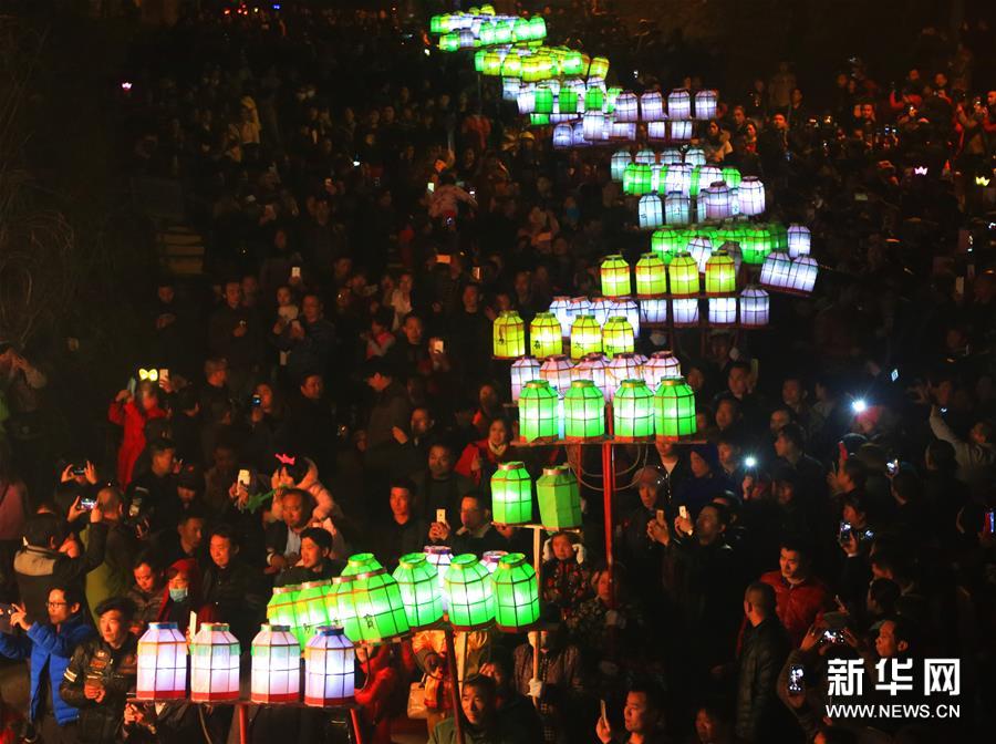 15日,湖南衡陽(yáng)縣界牌鎮(zhèn)舉行火燈節(jié)民俗活動(dòng),居民們點(diǎn)亮火把、紅燭,彩燈等,走街串巷,祈求一年風(fēng)調(diào)雨順、農(nóng)業(yè)生產(chǎn)豐收、社會(huì)平安和諧。新華社發(fā)(曹正平 攝)