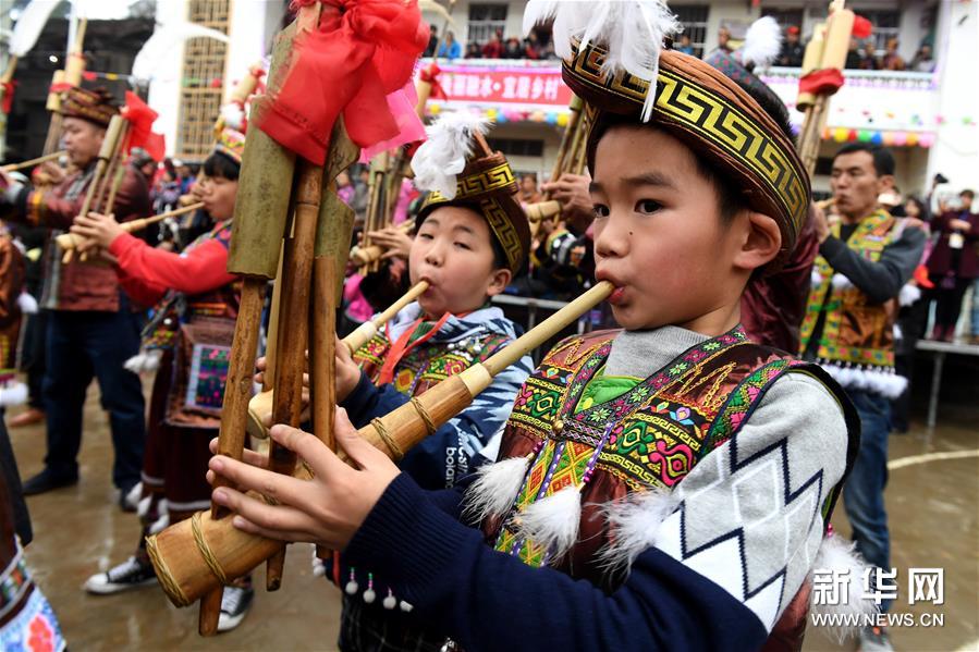 2月7日,廣西融水苗族自治縣安太鄉(xiāng)苗族群眾開展傳統(tǒng)的“打同年”民俗活動(dòng)。當(dāng)?shù)財(cái)?shù)百名苗族同胞與游客們歡聚一堂,一起開展對(duì)歌、蘆笙踩堂、文藝晚會(huì)等活動(dòng),歡慶新春佳節(jié)。 “打同年”是融水苗族村寨的一種民俗,即友好村寨之間的拜年聯(lián)歡活動(dòng)。新華社記者 李斌 攝