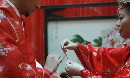 婚禮喝交杯酒也要用同心結(jié),亦是結(jié)發(fā)同心髻之延伸,《東京夢(mèng)華錄》:“用兩盞以彩結(jié)連之,互飲一盞,謂之交杯酒。飲訖,擲盞并花冠于床下,盞一仰一合,欲云大吉”。即用同心結(jié)拴在兩個(gè)酒杯上,交臂而飲。酒喝完后,與花冠擲于新床下,如果酒杯一個(gè)仰,一個(gè)覆,就是大吉的征兆。同心結(jié)還用于人們的閨閣裝飾,表達(dá)對(duì)白頭偕老、永結(jié)同心的愛(ài)情生活的向往和追求。