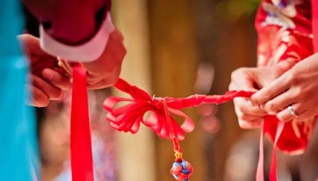 后來(lái),人們就稱(chēng)首次結(jié)婚的男女為“結(jié)發(fā)夫妻”。在有些新婚洞房中可看到火紅色的“同心結(jié)”,即是古代同心發(fā)結(jié)的延伸,“結(jié)”字取其堅(jiān)固、結(jié)伴、結(jié)合之意。
