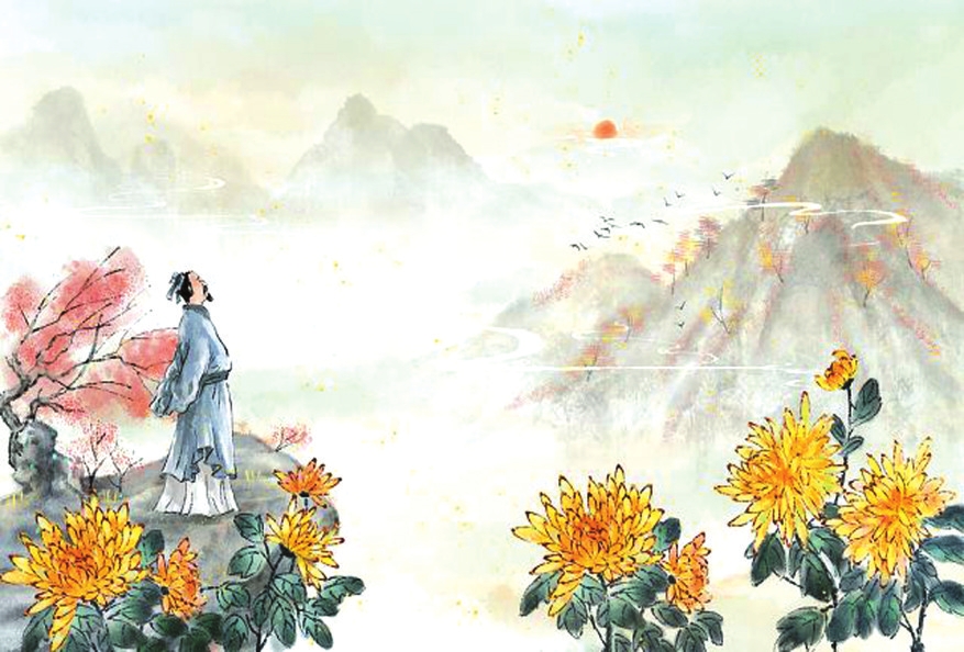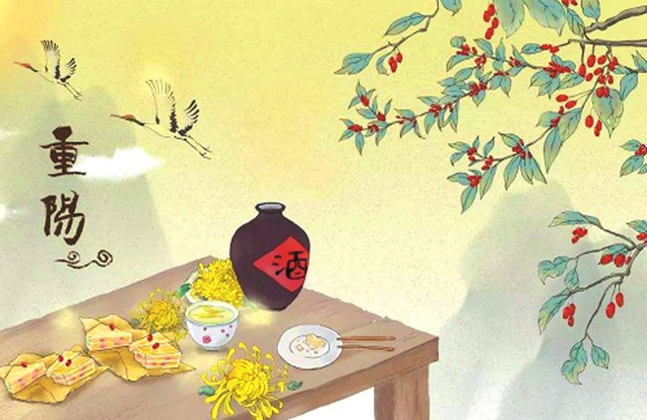 東晉詩人陶淵明在《九日閑居》一詩序文中曰:“余閑居,愛重九之名。秋菊盈園,而持醪靡由,空服九華,寄懷于言?!睂O思邈的《千金方月令》也稱:“重陽日,必以看酒登高遠(yuǎn)眺,為時宴之游賞,以暢秋志。酒必采茱萸、菊以泛之,即醉而歸。”唐代王維的詩句膾炙人口:“遙知兄弟登高處,遍插茱萸少一人。”杜牧《九日齊山登高》詩云:“塵世難逢開口笑,菊花須插滿頭歸?!鼻宕本┲仃柟?jié)的習(xí)俗是把菊花枝葉貼在門窗上,“解除兇穢,以招吉祥”。