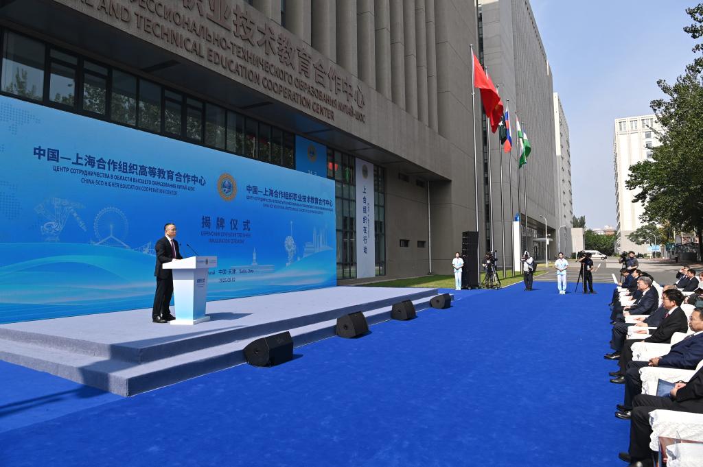 這是9月2日拍攝的中國—上海合作組織職業(yè)技術(shù)教育合作中心揭牌儀式現(xiàn)場(chǎng)。新華社記者 李然 攝