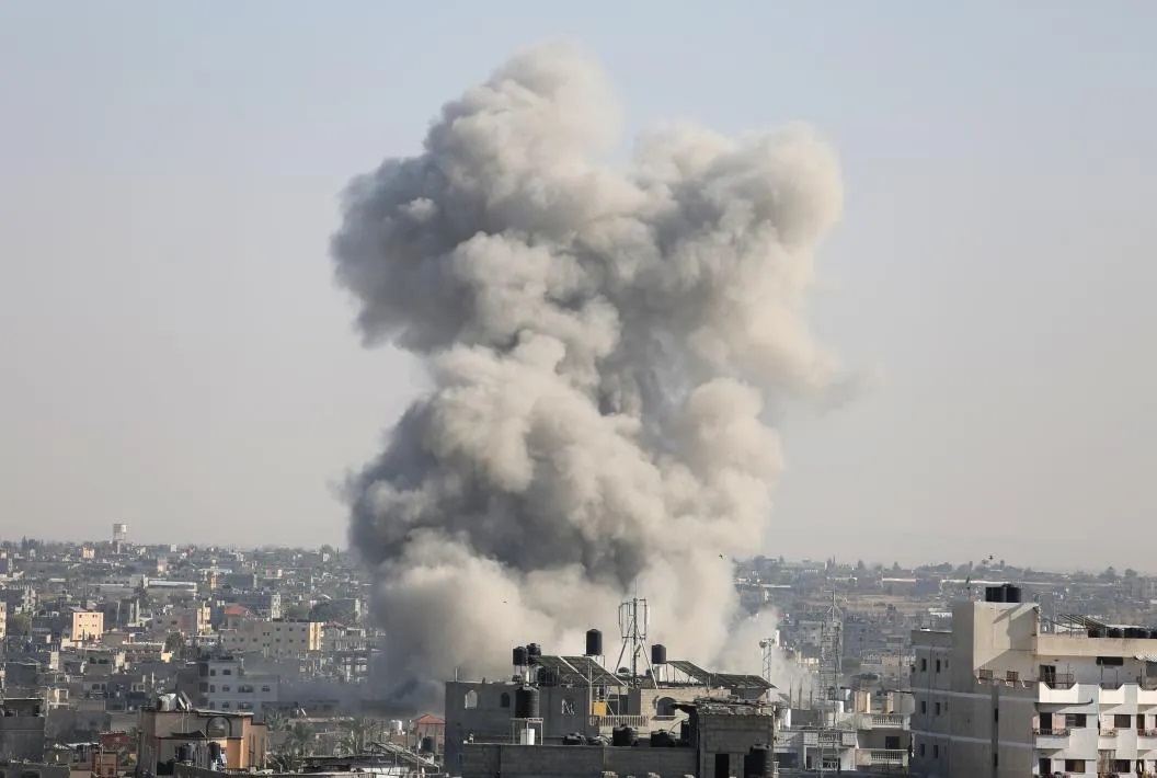 ??2023年10月26日,以色列空襲造成的濃煙從加沙地帶城市拉法城中升起。新華社發(fā)(哈立德·奧馬爾攝)