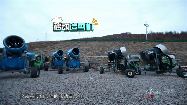這就是我們云頂?shù)囊苿釉煅C,一共有四十五臺。每年造雪結(jié)束之后,就把它入庫,進(jìn)行每年的定期檢修。