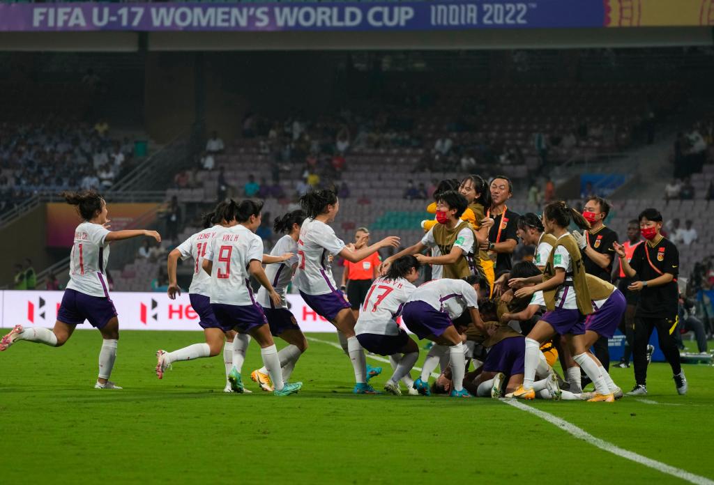 新華社孟買10月12日電 在12日進行的2022年U17女足世界杯C組首輪比賽中,中國隊以2:1戰(zhàn)勝墨西哥隊,取得“開門紅”。