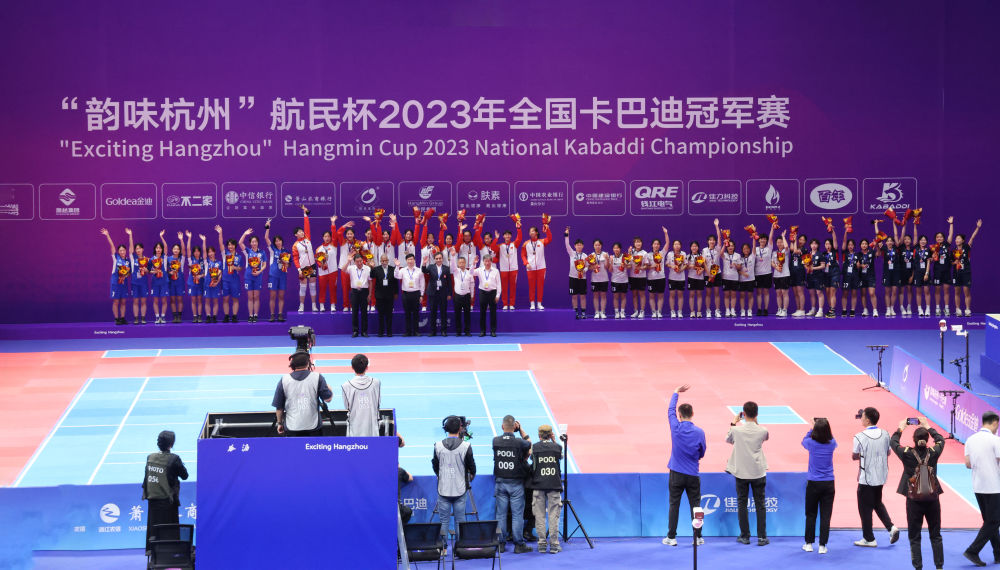 “韻味杭州”航民杯2023年全國(guó)卡巴迪冠軍賽6日在杭州亞運(yùn)會(huì)卡巴迪競(jìng)賽場(chǎng)館——蕭山瓜瀝文化體育中心落下帷幕,安徽師范大學(xué)和成都中醫(yī)藥大學(xué)分獲男、女子組冠軍。