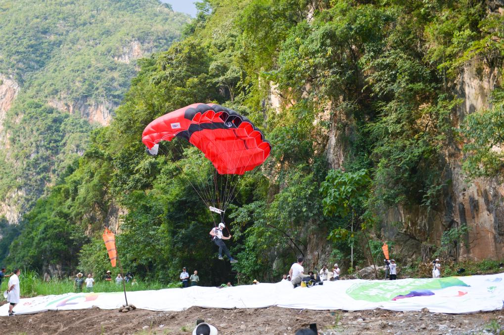 新華社貴陽9月6日電(記者駱飛、吳思)6日上午,極限運(yùn)動(dòng)員們相繼從北盤江大橋上飛躍而下,拉開了在貴州省六盤水市舉行的2023國(guó)際高橋極限運(yùn)動(dòng)邀請(qǐng)賽世界第一高橋站低空跳傘角逐的序幕。
