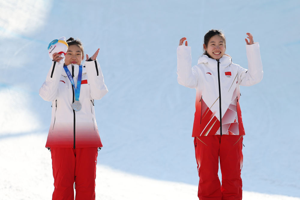 1月31日,冠軍中國選手劉奕杉(右)和亞軍中國選手陳紫菡在頒獎儀式上。新華社記者 李明 攝