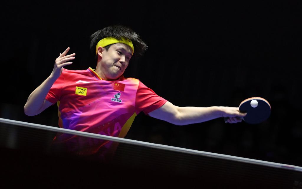 2月21日,中國隊球員王楚欽在第一盤比賽中回球。新華社記者 陶希夷 攝