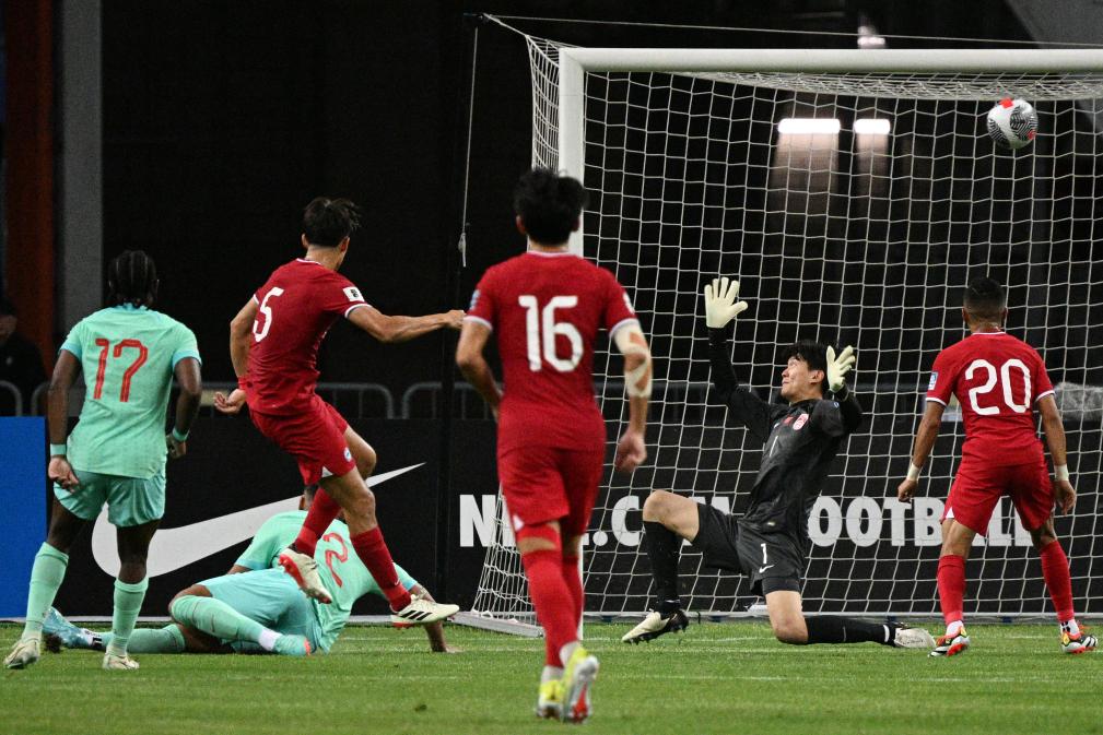 下半場風云突變,新加坡隊率先換人收到奇效,替補登場的拉姆利在第53分鐘禁區(qū)外遠射為主隊扳回一城。國足此后也進行了換人調(diào)整,以圖穩(wěn)固領先優(yōu)勢,不料卻后防“失火”。第81分鐘,中國隊后衛(wèi)張琳芃禁區(qū)內(nèi)解圍踢空,新加坡隊另一名替補隊員馬勒抓住機會爆射破門,將比分扳平。