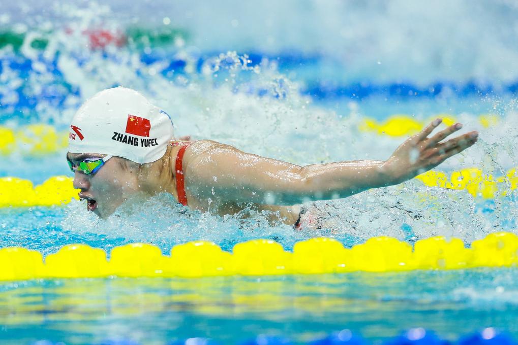 4月20日,張雨霏在女子100米蝶泳比賽中。新華社發(fā)(彭志剛攝)