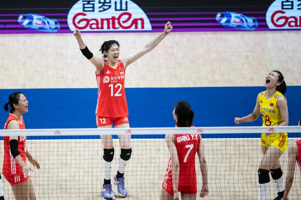 5月16日,中國隊(duì)球員在比賽中慶祝得分。新華社記者 王天聰 攝
