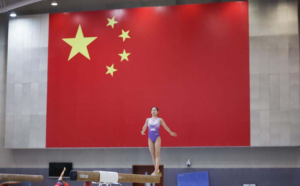 5月8日,中國體操隊隊員歐鈺珊在訓(xùn)練中。新華社記者 曹燦 攝