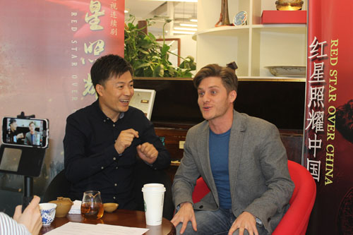由于拍攝成本的巨大,作為制片人,白小白巴不得將6000萬(wàn)的每一分都掰開(kāi)兩半來(lái)花。著名演員蔡國(guó)慶、劉濤、黃海冰、趙文卓、孫茜等源于對(duì)長(zhǎng)征精神的敬仰,主動(dòng)愿意減少自己的片酬友情出演,使更多的資金投入到拍攝和制作中,這也是讓白小白和導(dǎo)演趙東陽(yáng)最為感動(dòng)的。該劇從今年1月17日在上海開(kāi)機(jī),輾轉(zhuǎn)寧波、杭州、象山、北京、綏德、安塞、延安等斯諾去過(guò)的地方實(shí)地取景,還原歷史,歷時(shí)四個(gè)多月于5月27日殺青。在拍攝過(guò)程中,一直奔波在各地拍攝現(xiàn)場(chǎng)的白小白不得不將一歲多的孩子帶在身邊做兼職媽媽。她的精神感動(dòng)了劇組所有演職人員,大家常常熬夜加班,甚至帶病工作都毫無(wú)怨言。在延安市安塞縣(現(xiàn)安塞區(qū))一山頂需要拍攝500余名工農(nóng)紅軍打腰鼓的場(chǎng)景,十分壯觀,白小白和趙東陽(yáng)積極與當(dāng)?shù)卣畢f(xié)調(diào)幫忙,延安市政府、安塞縣政府立即召開(kāi)協(xié)調(diào)會(huì)議連夜調(diào)動(dòng)機(jī)械拓寬山路、運(yùn)送演職人員,大力支持劇組的拍攝。這個(gè)在電視劇中呈現(xiàn)的30多秒的畫(huà)面,光拍攝就用了整整一天的時(shí)間。在《紅星照耀中國(guó)》著作中,作者斯諾這樣寫(xiě)到,“這是我見(jiàn)過(guò)的最龐大的鼓樂(lè)隊(duì),在黃土高原上豪邁、灑脫、粗獷,這是民族精神的展現(xiàn)?!睂?dǎo)演趙東陽(yáng)說(shuō):“這是斯諾眼中工農(nóng)紅軍的壯舉,我們?cè)谘堇[中一定得將它表現(xiàn)的淋漓盡致?!?/p>