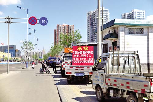 近日,記者在我市城區(qū)云中北路(原陶瓷廠附近)看到,近一百米的人行道上被出租貨運(yùn)車占了個(gè)滿滿當(dāng)當(dāng),行人被擠到了機(jī)動(dòng)車道上,存在安全隱患。希望相關(guān)部門加大對(duì)此路段的管治力度,還市民一個(gè)安全、暢通的出行環(huán)境。圖為停在人行道上的出租貨運(yùn)車 張志遠(yuǎn) 攝 (責(zé)任編輯:籍俊霞) |