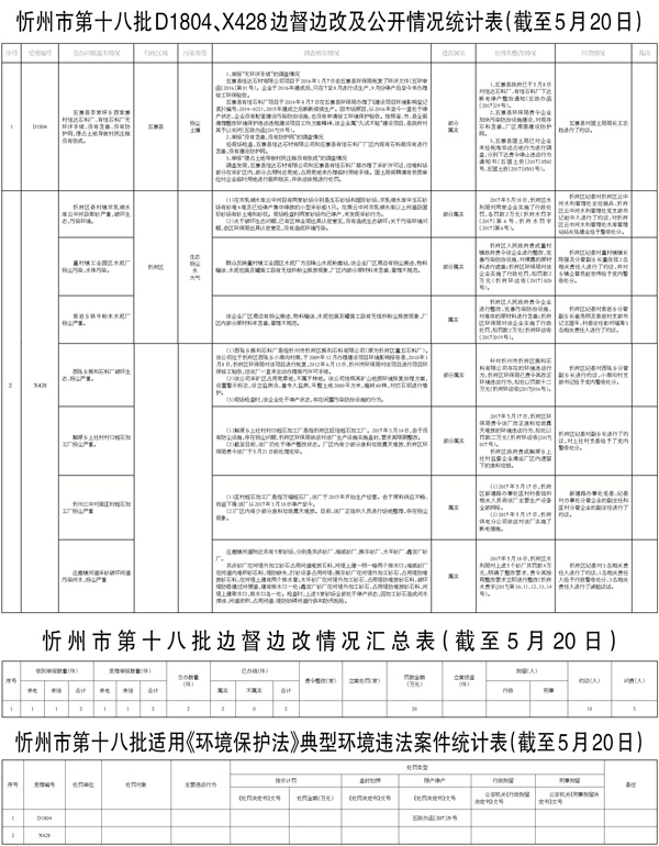 我市高度重視,立即組織查處,截至5月20日,督辦的4件和續(xù)報的2件群眾反映問題已辦結(jié)。其中,確認(rèn)部分屬實5件;確認(rèn)不屬實1件。對于部分屬實已辦結(jié)的環(huán)保問題,分別采取了相應(yīng)處理措施,其中罰款39.3萬元,對30名相關(guān)責(zé)任人進行了約談,對7名相關(guān)責(zé)任人進行了黨紀(jì)政紀(jì)處分。對6件群眾反映問題調(diào)查處理情況進行了信息公開。