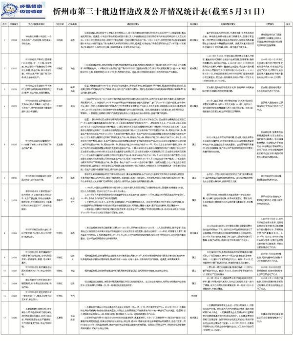 我市高度重視,立即組織查處,截至5月31日,督辦的群眾反映問題20件已辦結(jié),1件未辦結(jié)。其中,確認(rèn)屬實14件,部分屬實6件。對于屬實和部分屬實已辦結(jié)的環(huán)保問題,分別采取了相應(yīng)處理措施,其中罰款11萬元,對25名相關(guān)責(zé)任人進(jìn)行了約談,對2名相關(guān)責(zé)任人進(jìn)行了黨紀(jì)政紀(jì)處分。對20件群眾反映問題調(diào)查處理情況進(jìn)行了信息公開。