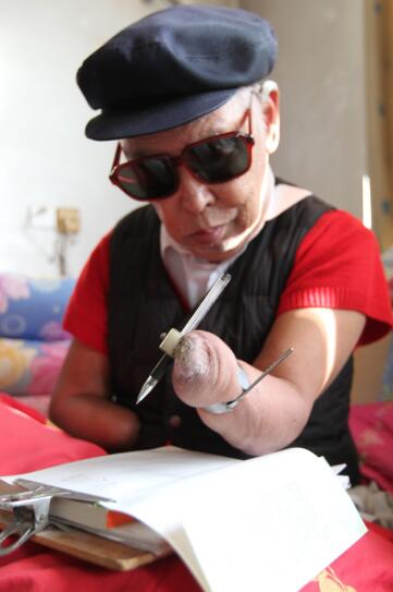 1982年,父親大病一場(chǎng),漸漸體力不支,主動(dòng)辭去了村支書的職務(wù)。家人如釋重負(fù),覺得他終于可以放松下來過過悠閑的日子了。可是不久,父親又有了新的方向——寫書!他沒手沒腳,怎么想到寫書了呢?父親在《極限人生》里提到了兩個(gè)因緣:第一個(gè),死去戰(zhàn)友的臨終囑托。父親的指導(dǎo)員犧牲前說過:“一個(gè)連的消亡,在戰(zhàn)爭(zhēng)史上算不了什么,但你要想辦法把這壯舉記錄成文,傳給后代,這很有意義?!钡诙€(gè),共產(chǎn)黨人的使命召喚著他去寫:一次父親應(yīng)邀去一所中學(xué)作報(bào)告,上學(xué)的重外甥跑來問他:“舅姥爺,同學(xué)們議論說,當(dāng)年你們打仗那么拼命,是不是太傻了?您到處給人作報(bào)告,是不是拿了人家錢了?”這些話深深地刺痛了父親,作為歷史的見證人,作為共產(chǎn)黨人,他覺得自己必須告訴孩子們,世界上還有比錢更重要的東西,還有很多安身立命的道理,他下定決心,一定要把那段歷史寫下來。