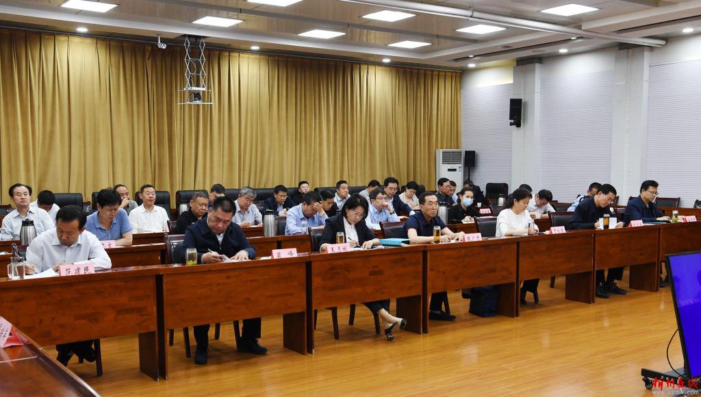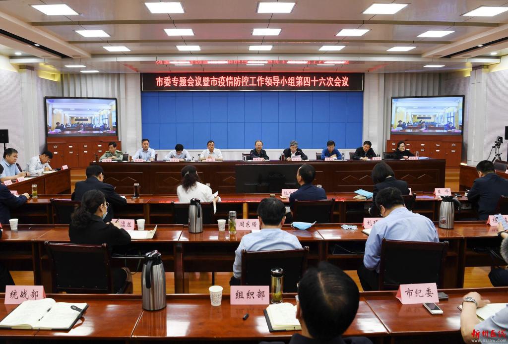 市委專題會(huì)議暨市疫情防控工作領(lǐng)導(dǎo)小組第四十六次會(huì)議會(huì)場。記者 劉紀(jì)森 攝