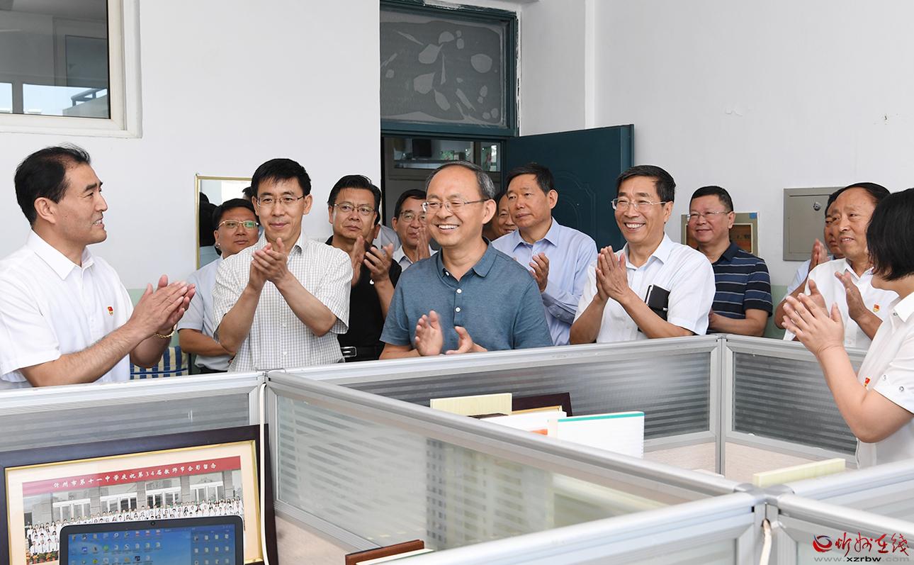 近年來(lái),忻州一中優(yōu)生培養(yǎng)取得階段性成果,綜合辦學(xué)水平大幅提升,高考一本達(dá)線率連年在85%以上,二本達(dá)線率逼近百分之百,教育質(zhì)量享譽(yù)三晉,教學(xué)成績(jī)位列全省第一方陣,這些都離不開該校全體教師的辛勤付出。鄭連生一行詳細(xì)察看了校園環(huán)境,并到數(shù)學(xué)教研室與教師進(jìn)行交流,聽(tīng)取教育教學(xué)意見(jiàn),詢問(wèn)工作生活上的困難。鄭連生指出,百年大計(jì),教育為本;教育大計(jì),教師為本,教師是教育事業(yè)發(fā)展的基礎(chǔ),要高度重視并切實(shí)抓好教師隊(duì)伍建設(shè),不斷提升教師的教學(xué)水平,為教師的工作和生活創(chuàng)造便利條件。各級(jí)各部門要始終堅(jiān)持教育優(yōu)先發(fā)展戰(zhàn)略,加大財(cái)政投入,加強(qiáng)政策支持,全面優(yōu)化教育發(fā)展環(huán)境,推動(dòng)忻州教育水平再上新臺(tái)階,為我市經(jīng)濟(jì)社會(huì)發(fā)展培養(yǎng)更多人才。