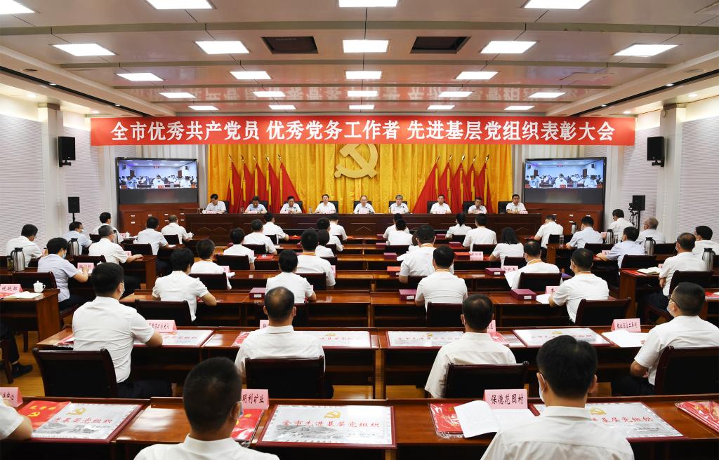 上午8時(shí)30分,大會(huì)正式開(kāi)始,全體起立,奏唱國(guó)歌。來(lái)自全市各行各業(yè)、在工作中取得優(yōu)異成績(jī)的99名共產(chǎn)黨員、100名黨務(wù)工作者和100個(gè)基層黨組織,分別被授予“全市優(yōu)秀共產(chǎn)黨員”“全市優(yōu)秀黨務(wù)工作者”“全市先進(jìn)基層黨組織”榮譽(yù)稱號(hào)。受到表彰的優(yōu)秀個(gè)人和先進(jìn)集體代表先后上臺(tái)領(lǐng)獎(jiǎng),會(huì)場(chǎng)響起熱烈掌聲。