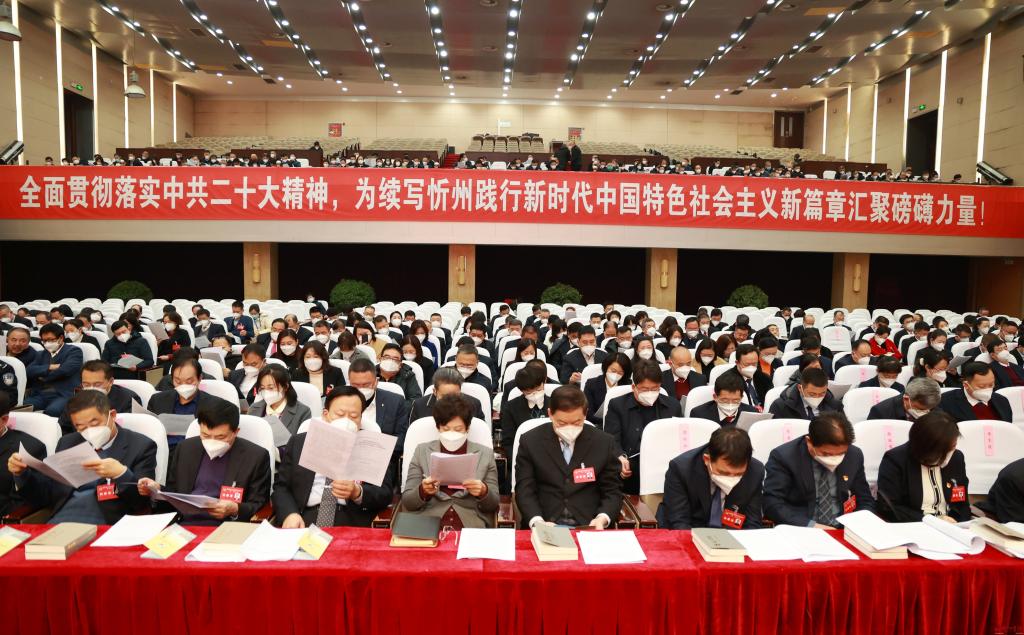 晉控集團(tuán)忻州會(huì)議中心千人會(huì)堂內(nèi)外布置簡樸,莊嚴(yán)隆重。會(huì)場內(nèi),燈光璀璨,氣氛熱烈。大會(huì)主席臺正中懸掛著政協(xié)會(huì)徽,在十面鮮艷紅旗的映襯下熠熠生輝。會(huì)場后方高高懸掛著大紅條幅:全面貫徹落實(shí)中共二十大精神,為續(xù)寫忻州踐行新時(shí)代中國特色社會(huì)主義新篇章匯聚磅礴力量!