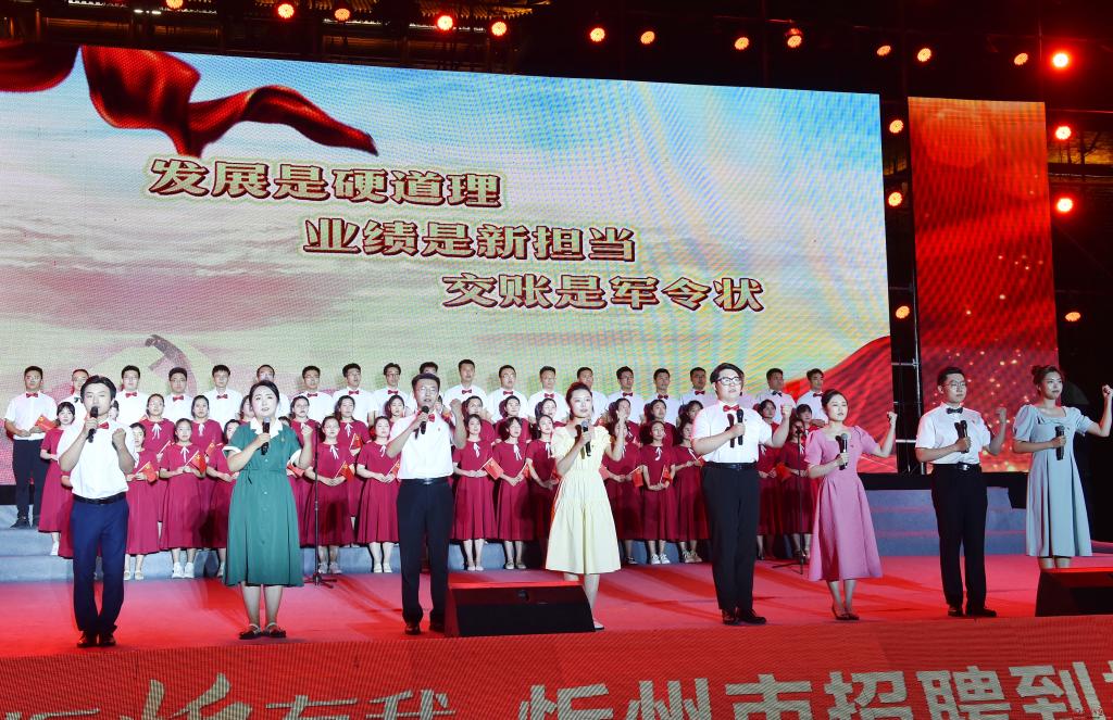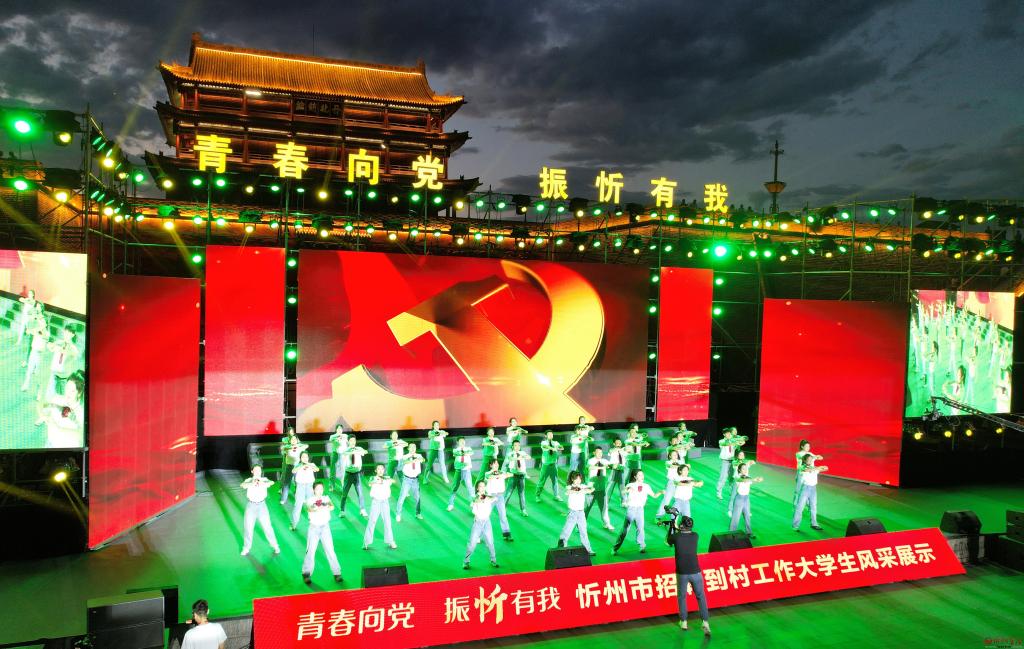 青春向黨,振“忻”有我。7月7日晚,忻州市招聘到村工作大學(xué)生風(fēng)采展示活動(dòng)在忻州古城北城門樓廣場(chǎng)精彩上演。市委書記朱曉東,市政協(xié)主席范建民,市委常委、秘書長(zhǎng)溫建軍,市委常委、組織部長(zhǎng)張敏等市領(lǐng)導(dǎo)與社會(huì)各界和全市到村工作大學(xué)生代表一同觀看。