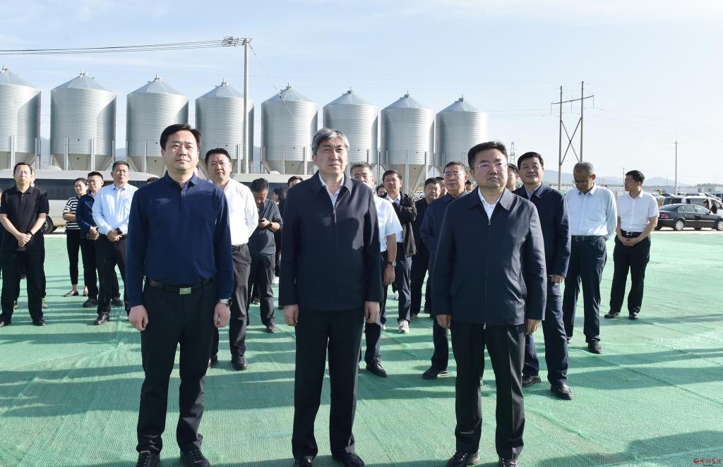 在東方希望畜牧有限公司觀摩檢查現(xiàn)代化高效生態(tài)循環(huán)養(yǎng)殖產(chǎn)業(yè)鏈項(xiàng)目建設(shè)情況。馮曉磊