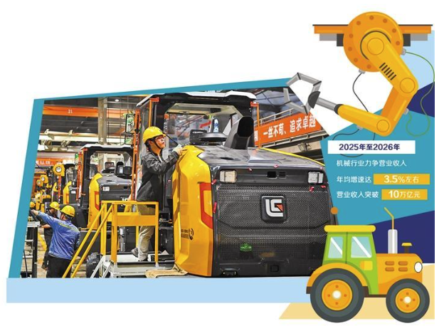 《方案》提出,2025年至2026年,機(jī)械行業(yè)運(yùn)行保持平穩(wěn)向好態(tài)勢,重點(diǎn)產(chǎn)業(yè)鏈供應(yīng)鏈韌性和安全水平持續(xù)提升,發(fā)展質(zhì)量效益邁上新臺階,力爭營業(yè)收入年均增速達(dá)到3.5%左右,營業(yè)收入突破10萬億元。中國機(jī)械工業(yè)聯(lián)合會相關(guān)負(fù)責(zé)人表示,《方案》的目標(biāo)設(shè)定,體現(xiàn)了規(guī)模與質(zhì)量并重的系統(tǒng)性思維,強(qiáng)調(diào)供給和需求兩側(cè)協(xié)同發(fā)力。