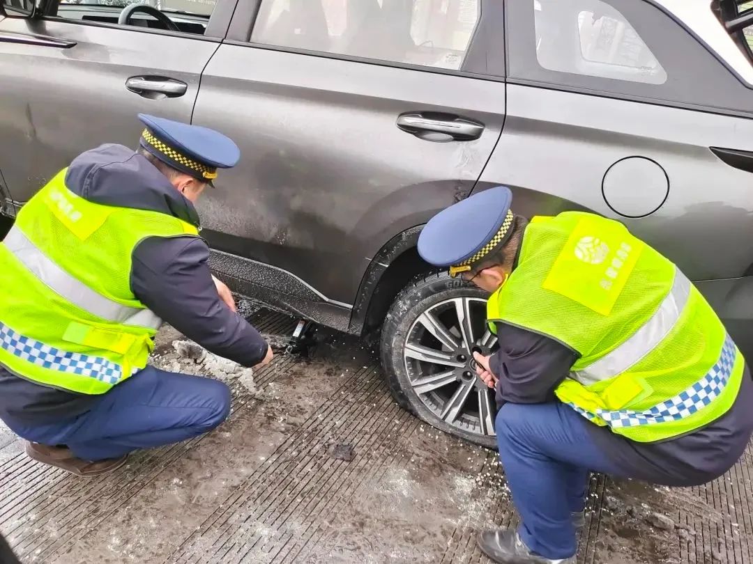 在汾陽西收費站附近,一私家車主想要拆卸下防滑鏈,但不會操作,熱心的高速收費員從站內(nèi)拿來拆卸工具,和治超員一起,幫車主拆卸下防滑鏈。