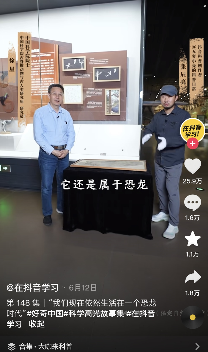 前不久,中國(guó)科學(xué)院院士徐星和《博物》雜志副主編、《中國(guó)國(guó)家地理》融媒體中心主任“無(wú)窮小亮”,帶著600多萬(wàn)網(wǎng)友“云逛”中國(guó)古動(dòng)物館(保定自然博物館),那寓教于“逛”的科普形式、極具網(wǎng)感的科普語(yǔ)言,就讓那些古生物知識(shí)從課本里鉆了出來(lái),變得易懂可感。