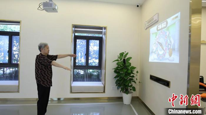 浙江杭州,一老人在進行線上體感互動游戲。肖健 攝