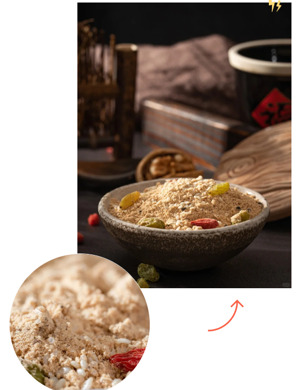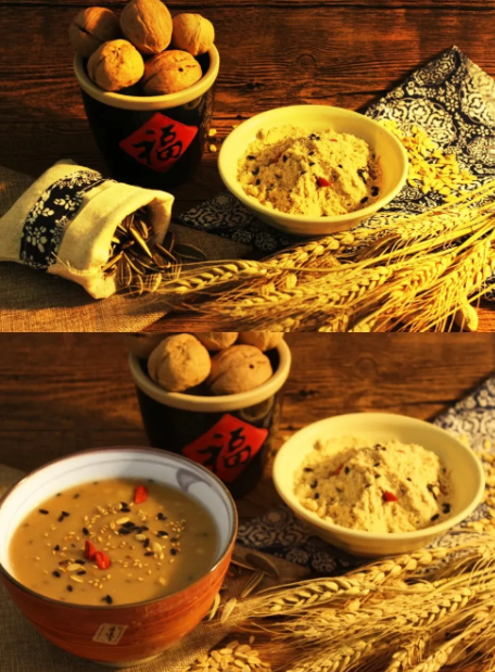 這款小吃由五谷雜糧粉和堅(jiān)果炒制而成,加入開水即可飲用,無論是搭配油條還是咸菜,都別有一番風(fēng)味。