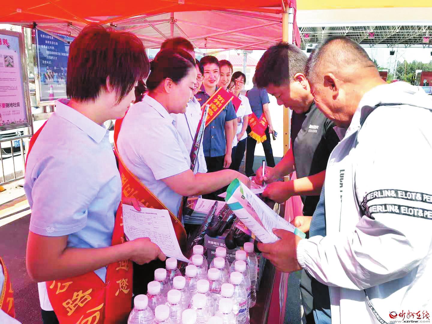 高速公路忻州收費站組織全體黨員于9月2日上午在收費站廣場開展營銷宣傳活動,宣傳ETC秒過收費站便捷通行的好處,受到群眾歡迎。 馮艷花 攝